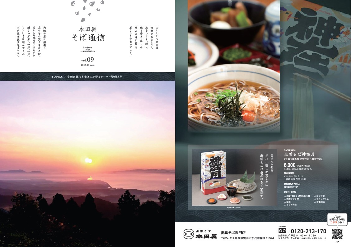いつも出雲そばの本田屋をご愛顧いただき、誠にありがとうございます。