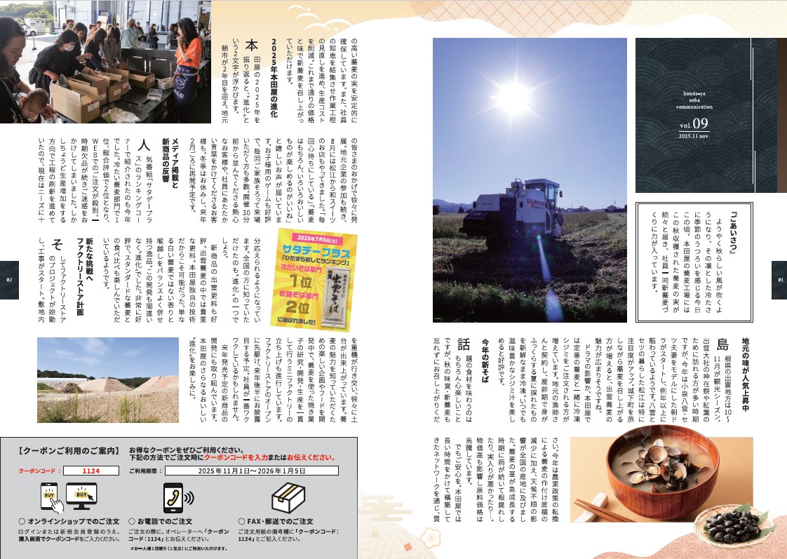 2025年最後となる「本田屋かわら版」の11月号ができあがりました。