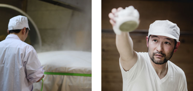 蔵主自らがほぼ一人で、米を洗い、蒸し、麹をつくり、発酵の温度を見守ります。